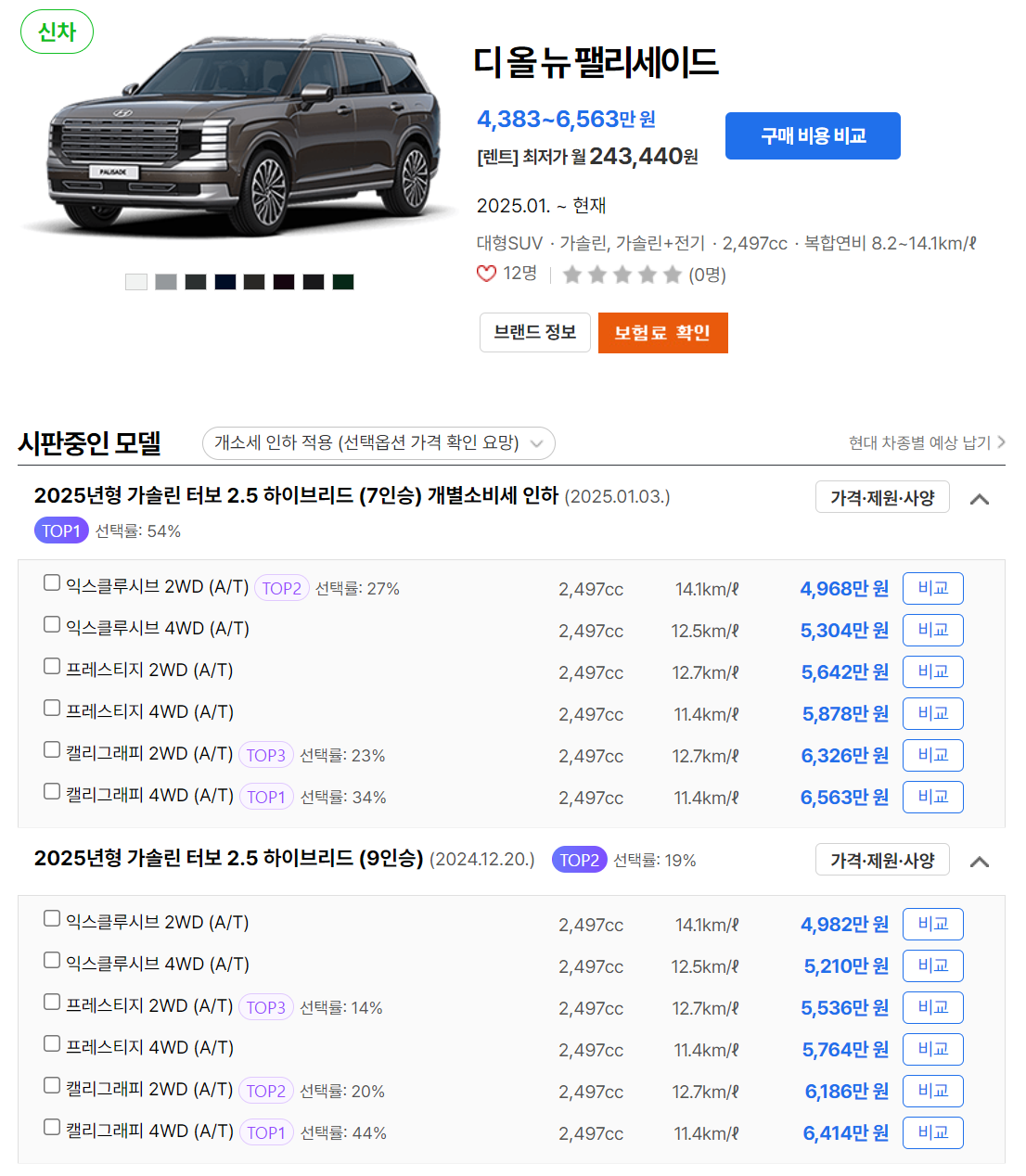 2025 팰리세이드 하이브리드 가격